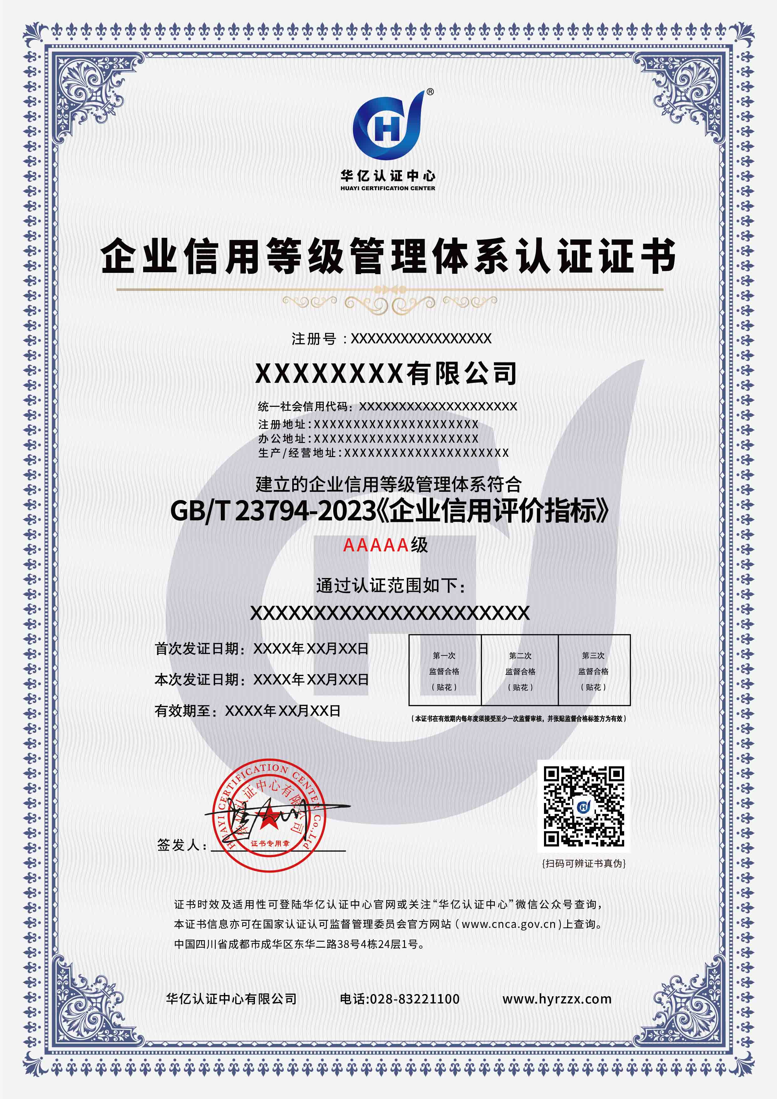 企业质量诚信管理体系认证证书样本